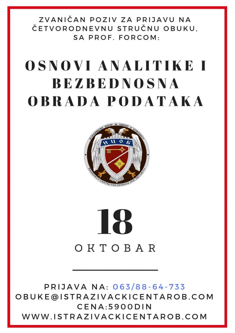 Ponovo organizujemo najtraženiju i jedinstvenu obuku u našoj državi sa uglednim generalom i profesorom Božidarom Forcom. Obuka uključuje teorijsku i proširenu praktičnu nastavu.Kroz praktičan rad upoznaćete se sa SWOT analizom, procenom rizika i analizom dokumenata. Obuka uključuje četiri dana interaktivnog…