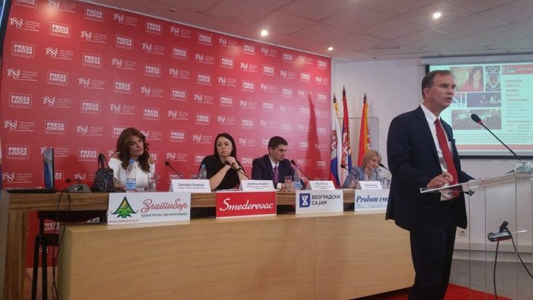 U okviru projekta ,,Bezbednosni dijalozi“, koji ICOB sprovodi već pet godina, organizovali smo konferenciju u press centru 20.06.2017. pod nazivom ,,Srbija, Amerika i borba protiv terorizma“. Amerika, Srbija i Rusija danas imaju zajedničke interese u borbi protiv ključnog svetskog problema — globalnog terorizma. Iz tog razloga smo ovaj put u okviru Bezbednosnih dijaloga posebnu pažnju posvetili upravo ovoj temi. Na konferenciji za medije su govorili:Miloš Tišma, Istraživački centar za odbranu i bezbednost,Jasmina Andrić, Istraživački centar za odbranu i bezbednost, Danijela Sremac, Srpski Institut, Vašington D.C. i Kurt Donnelly, zamenik ambasadora SAD. Zahvaljujemo se svim prisutnim medijima i gostima, a posebno se zahvaljujemo zameniku američkog ambasadora u Srbiji g. Kurtu Donnelly. Vidimo se na sledećim ,,Bezbednosnim dijalozima“!